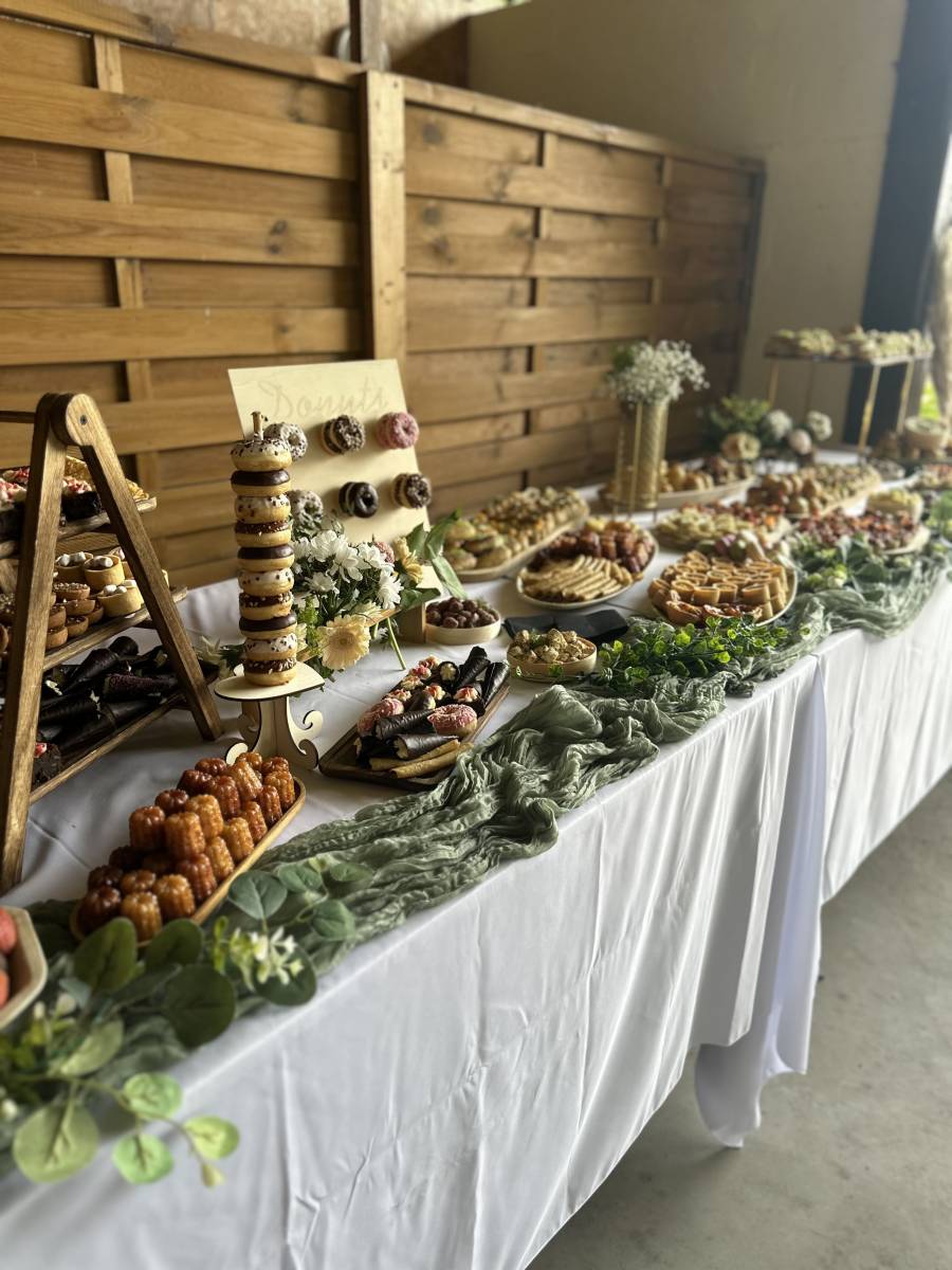Si vous le souhaitez, nous pouvons réaliser un “Grazing table”, une grande table généreusement présentée, conçue pour créer un espace convivial où vos invités peuvent se retrouver et profiter d’un moment partagé. Installé en extérieur, ce type de buffet apporte une touche originale et accueillante à votre réception.
